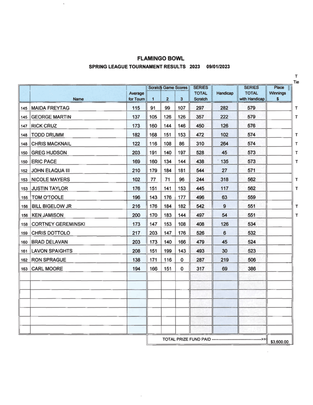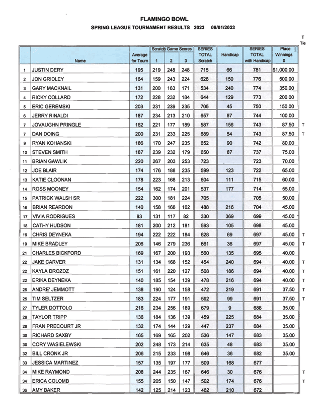 2023 Spring Leagues Tournament Results* *Please scroll down to see all 5 pages